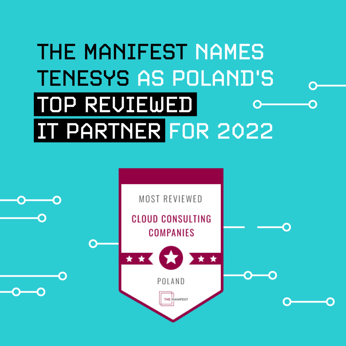 Because of their huge appreciation and support, we’ve unlocked a new award just recently. We’re incredibly excited to announce that Tenesys was officially recognized during the very first The Manifest Company Awards! According to the platform's research, our team is one of Poland’s top-rated cloud consulting, IT service, and managed service providers for 2022.